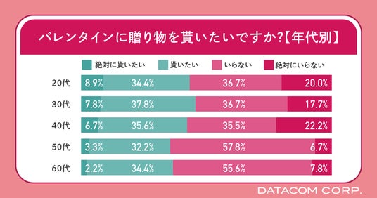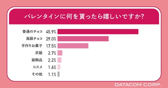 小売業界に特化した商品・顧客分析ソリューションを始めとする、パッケージシステムを開発・提供しているデータコム株式会社(本社:宮城県仙台市、代表取締役:小野寺修一)は、20代~60代の男性にバレンタインに関するアンケート調査を実施しました。