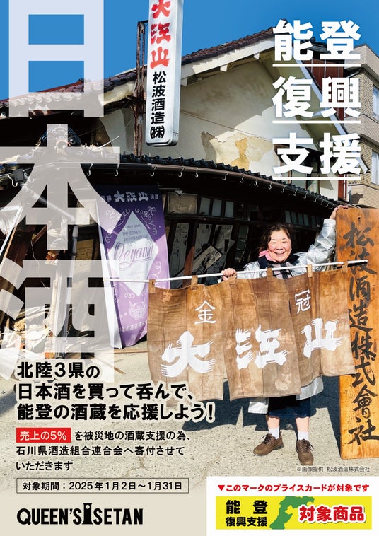 株式会社三越伊勢丹ホールディングスのグループ会社であり、首都圏を中心に19店舗のスーパーマーケット(クイーンズ伊勢丹)を運営する、株式会社エムアイフードスタイル(本社:東京都新宿区、代表取締役社長:雨宮 隆一)は、食品スーパーマーケットとして、「令和6年能登半島地震」において被災された地域の商品(今回は日本酒)の販売を通じ、応援につなげていきたいという思いから、昨年に引き続き、災害支援チャリティーを開催しております。
