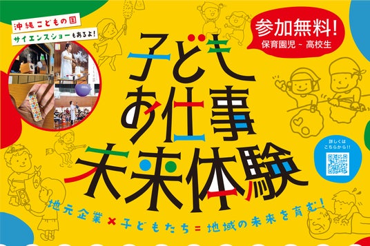 約50社以上の地元企業が参加し、実際に体験できるブースや、仕事の魅力を学べる会社紹介コーナーをご用意。さらに、沖縄こどもの国によるサイエンスショーやキッチンカーも登場し、ご家族で楽しめる充実の内容です。参加費は無料ですので、ぜひお子さまと一緒にお越しください。