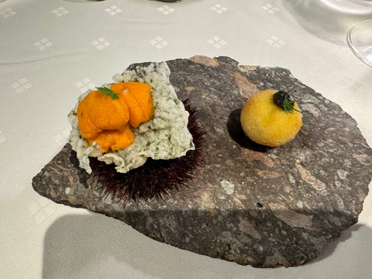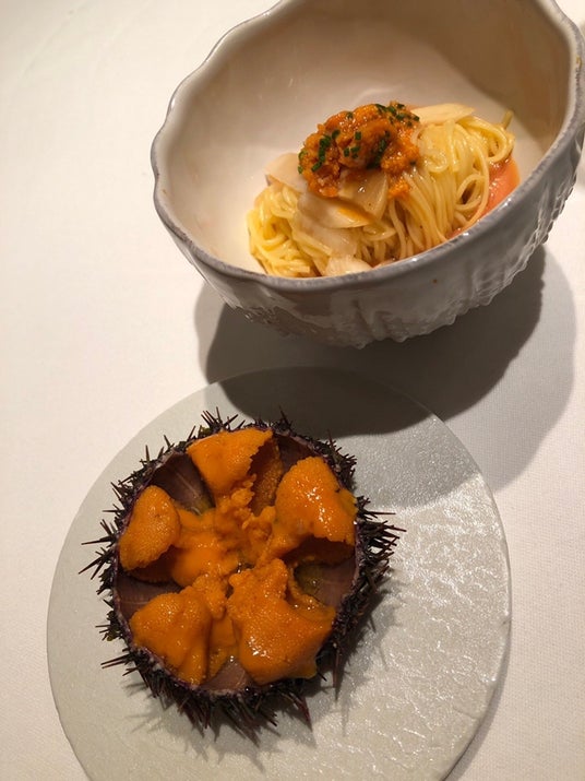 フレンチレストラン『ラ・プラージュ』で提供された金山雲丹