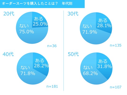 - 20代でも25.0%(4人に1人)がオーダースーツの購入経験あり