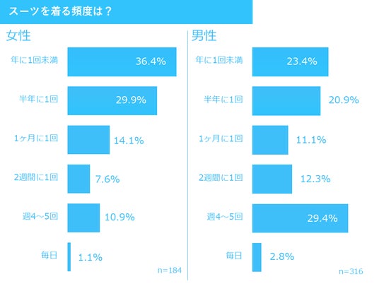 この結果は、スーツを着る機会が限られている人が全体の約3割近くを占めていることを示しています。