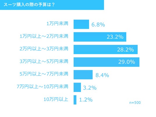「1万円未満」と回答した人も6.8%存在し、予算を最低限に抑えてスーツを購入する層も一定数いることが分かります。