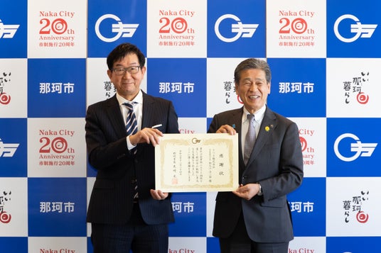 さつき株式会社(本社:大阪市中央区 代表取締役社長:祖父江 洋二郎 以下:当社)は、2024年12月24日に茨城県那珂市から企業版ふるさと納税の感謝状をいただきました。この表彰は、那珂市における企業版ふるさと納税の仕組みを通じて、ICT教育の充実・促進への貢献が認められ、拝受する運びとなりました。