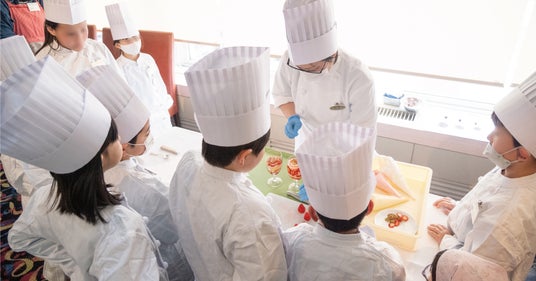 【持ち物】 エプロン、三角巾(大人の参加者のみ、お子様にはコックコートをご用意します)