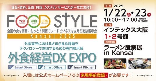 FOOD STYLE Kansai 実行委員会(所在:東京都港区、運営:株式会社イノベント)は、1月22日(水)・23日(木)の2日間、インテックス大阪 1・2号館にてFOOD STYLE Kansai 2025/ラーメン産業展 in Kansai/外食経営DX EXPOを開催いたします。開催初日の1月22日にはオープニングセレモニーを実施いたします。