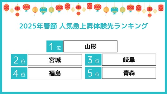 急上昇体験スポットランキングでは東北地方に注目、SNSとアクセス向上で予約急増