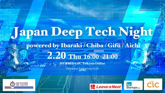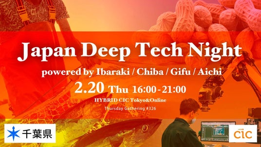 CIC(本社:東京都港区虎ノ門、職務執行者:ティム・ロウ)は、日本のディープテック分野のスタートアップ育成に注力している茨城県・千葉県・岐阜県・愛知県の 4 県とともに、ディープテックスタートアップを対象とした2024 年度支援事業の成果を発表し、ピッチやパネルディスカッションを通して広くアピールする「 Japan Deep Tech Night 」を開催します。今回、CIC Tokyo の姉妹団体である Venture Cafe Tokyo が毎週木曜日に開催している Thursday Gathering の一環として 4 つの県が合同で開催することにより、多様な産業分野・業種から企業、起業家、投資家、研究者、支援者等の参加者を募り、支援事業への理解を深めていただくとともに、ディープテックの振興について登壇者と参加者がともに考え、意見を交わすイベントとなります。