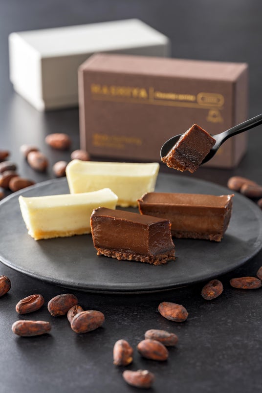 チョコレートの濃厚な味わいとなめらかな舌触り、サクサクとしたクランブルの食感が特徴的なChocosilの看板商品。当社自慢のミルクチョコレートを配合した「ショコラ・テリーヌHASHIYA」と、ホワイトチョコレートを配合した「ホワイトチョコチーズ・テリーヌKOU」の2品をラインアップしています。お試しにちょうど良いバータイプもご用意しています。