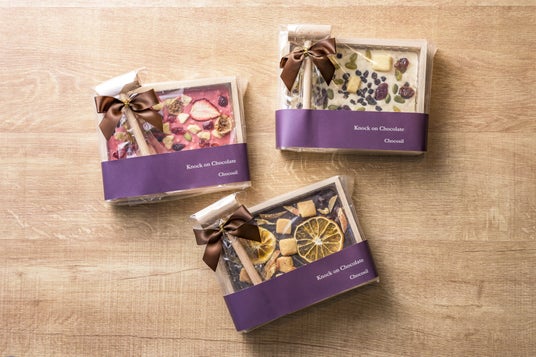 チョコレートにドライフルーツやナッツなど様々な具材をトッピングした、見た目、味、食感ともに贅沢な割りチョコレート。ビター、ミルク、ホワイトそれぞれのチョコレートとの相性を試行錯誤して選んだ素材を組み合わせ、5種類のフレーバーをラインアップ。量り売りでお好きな分だけご購入いただけます。