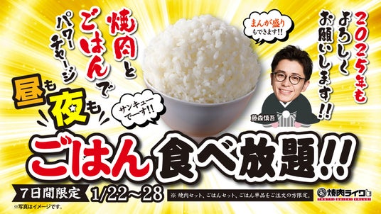 株式会社焼肉ライク(所在地:東京都港区、代表取締役:高橋尚也)が運営する「焼肉ライク」は、通常17時までのごはん食べ放題サービスを1月22日(水)より7日間限定で、終日ごはん食べ放題をお楽しみいただけるキャンペーンを実施します。