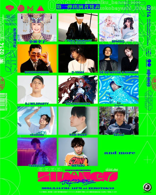 松竹株式会社と株式会社TSTエンタテイメントは、2025年2月14日(金)新宿・歌舞伎町、国内最大級のナイトクラブ『ZEROTOKYO』にて、日本の伝統音楽である雅楽や神楽囃子から歌謡曲、最新EDMが融合する革新的音楽イベント「ZIPANGU the Party!!」を開催します。これまで130年にわたり多様なエンタテイメントを手がけてきた松竹と、音楽イベントのパイオニアであるTSTエンタテイメントが初コラボし、時代や文化を超えた、刺激的で新感覚のカルチャーミックス体験をお届けします。