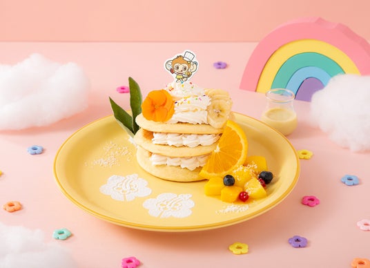 ルッキーのトロピカル☆パンケーキ 税込1,390円バナナ、マンゴープリンなどがトッピングされたトロピカルなパンケーキ☆