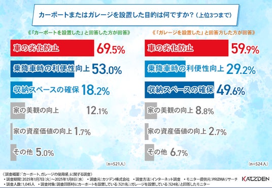 カーポートまたはガレージを設置した目的は「車の劣化防止」が最多