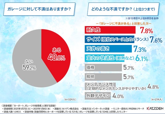 カーポートと同様に、ガレージ所有者の約4割が不満を感じているようです。