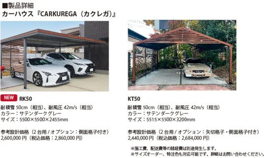 “カーポート以上、ガレージ未満”スチール製カーハウス『CARKUREGA(カクレガ)』は快適性・デザイン性の両方を実現