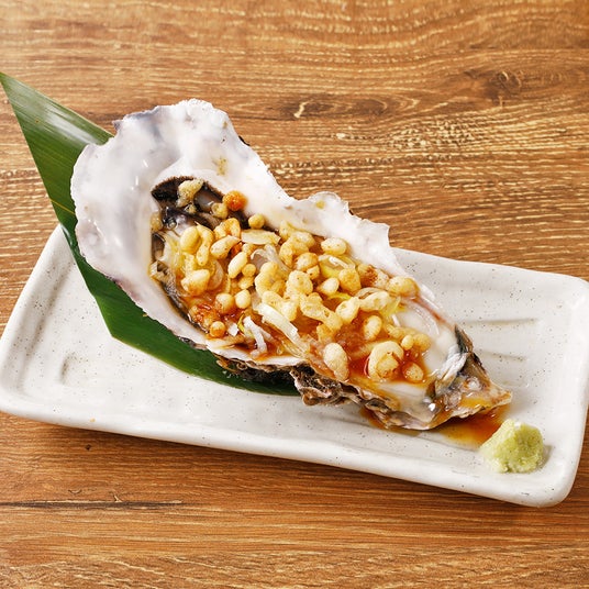 「たぬき牡蠣」牡蠣に出汁とあげ玉をかけたたぬき風。