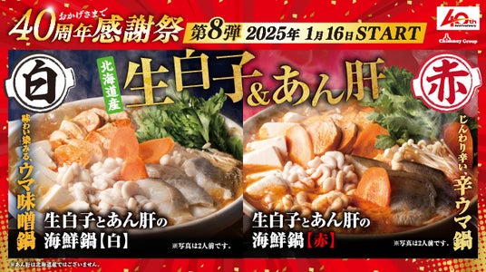 海鮮居酒屋「はなの舞」「さかなや道場」等を全国展開するチムニー株式会社(本社:東京都墨田区 代表取締役社長:茨田篤司)は、2025年1月16日(木)より、全国のチムニーグループ241店舗で【40周年感謝祭 第8弾フェア】を開始いたします。