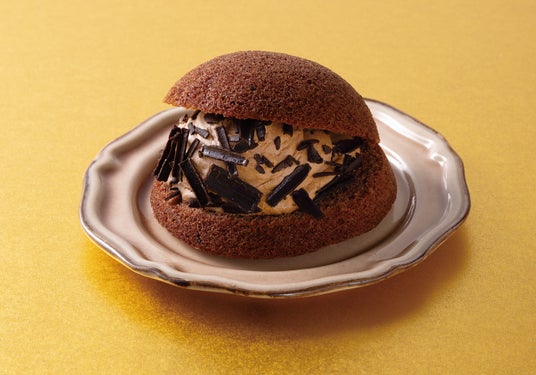 チョコクリームとキャラメルチョコクリーム、削りチョコをサンドしたココア味のシフォンサンドです。 Top’sの「チョコレートケーキ」をイメージしたチョコレートクリームに、キャラメルチョコクリームもサンドし、飽きずに食べられる仕様にしました。