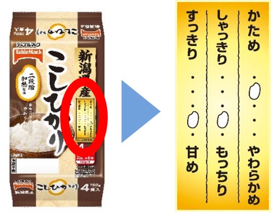 お客様が商品を選ぶ際、お好みのものを選びやすいようにパッケージへ掲載中の食味評価表(当社での商品評価結果)の掲載場所をパッケージ側面から正面に移動。より見やすい仕様にリニューアルしました。