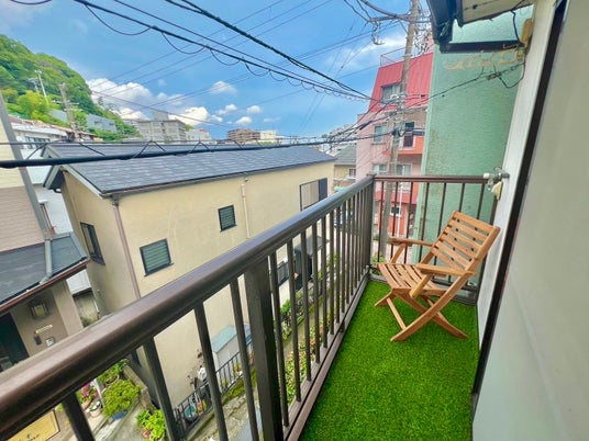 人工芝の敷かれたバルコニー