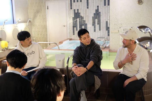 1/16には体験入浴に先駆けメディア向けトークショーも開催(左から、鈴木啓太(AuB株式会社 代表取締役)、尾花大輔(N.HOOLYWOODデザイナー)、秋山大輔/サウナ師匠(プロサウナー))
