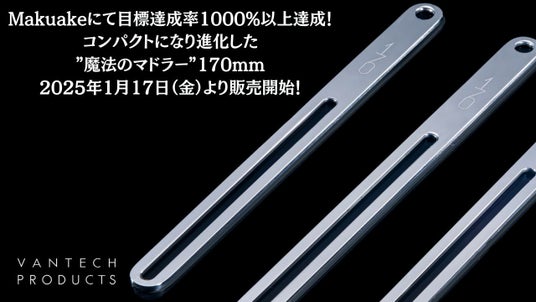 滋賀県で排水処理事業を中心に取り組み、そこから生まれた独自の金属加工技術とプロダクトデザインを掛け合わせたブランド「VANTECH PRODUCTS(ヴァンテックプロダクツ)」を展開する有限会社ヴァンテック(所在地:滋賀県栗東市、代表取締役:井之口 哲也)は、応援購入サービス「Makuake(マクアケ)」で目標比1107%の売上を達成した、メディアで話題の魔法のマドラー220mm(ニヒャクニジュウミリ)の兄弟商品”170mm(ヒャクナナジュウミリ)”を公式オンラインショップ(https://vantech.stores.jp/)にて販売を開始します。