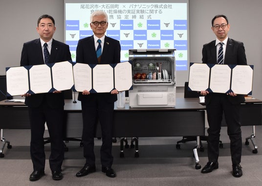 山形県尾花沢市(以下、尾花沢市)と山形県北村山郡大石田町(以下、大石田町)とパナソニック株式会社 くらしアプライアンス社(以下、パナソニック)は、若者世代が安心して子供を育てられる環境の充実に共同で取り組んでいくことで合意し、協定を締結しました。