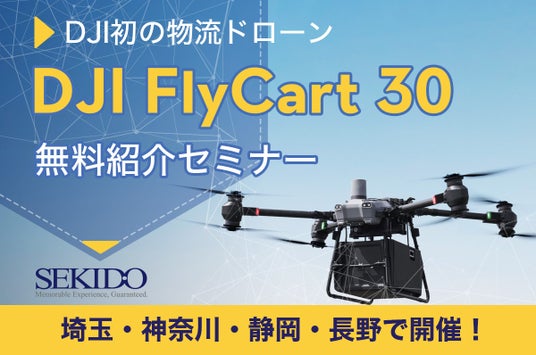 DJI(ディージェイアイ)正規販売代理店としてドローンビジネスの最先端を支える株式会社セキド(本社:東京都港区、代表取締役:大下貴之、以下セキド)では各地の販売代理店と共同で、1月31日~2月21日にかけて、埼玉県春日部市、神奈川県南足柄市、 静岡県藤枝市、長野県松本市の4会場で、DJI初の物流ドローン「DJI FLYCART 30(フライカート 30)」の魅力や飛行性能をデモフライトで確認できる「DJI FlyCart 30 運搬フライト実演セミナー」を開催いたします。