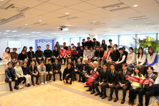1月14日(火)、株式会社SCOグループ(本社:東京都千代田区、代表取締役社長 玉井雄介、以下「SCOグループ」)に株式会社鹿島アントラーズ・エフ・シー(本社:茨城県鹿嶋市、代表取締役社長:小泉文明、以下「鹿島アントラーズ」)の選手9名が来社されました。