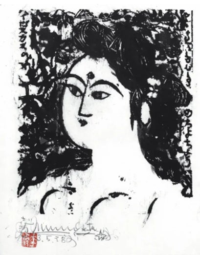 棟方 志功「ハイビスカス女の柵」39.5×31.4cm 板画 棟方志功鑑定登録委員会鑑定書