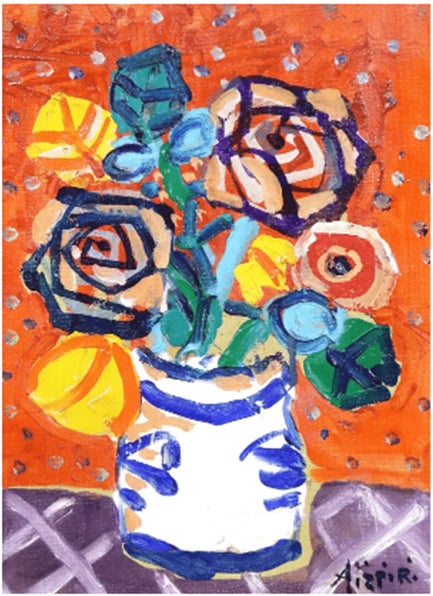 アイズピリ「赤いバックのブーケ」4号 油彩