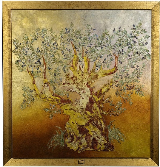 「La Luce degli Ulivi(光のオリーブ)」キャンバスサイズ:84.0×90.0×4.5cm フレームサイズ:95×101cm パネルキャンバス、MAZZI FINE ARTオリジナル油彩、純金、銀彩