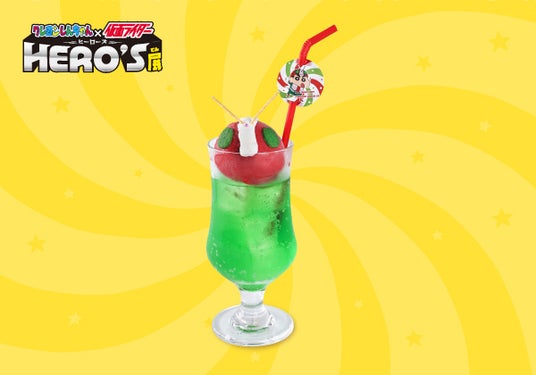 しんちゃん×仮面ライダーV3クリームソーダ¥880(税込)