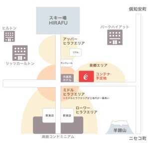 コンテナショップ内では、観光客向けの飲食店の選択肢が少ないというニセコ町エリアの課題に対応するため、ラーメンや高級和牛御膳を提供する飲食店を展開いたします。また、リライブウェアを体感できるスペースを設置し、スキーの観光客向けの商品購入やレンタルが可能となります。これにより、疲労回復やケガの予防の面からも滞在中の身体のサポートを目指します。