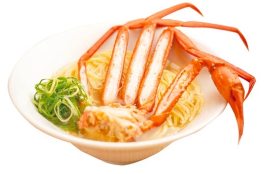 ▲提供ラーメン(一例) ホタテなど魚介からだしを取ったスープが特徴の上品な味わいのラーメンに贅沢にもカニを使用しています。