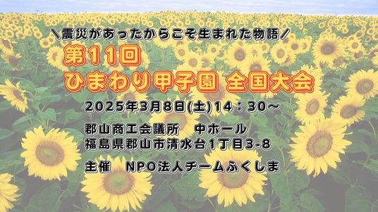 NPO法人チームふくしま(福島県福島市 理事長:半田真仁)は、「第11回ひまわり甲子園全国大会」の参加者を募集しています。