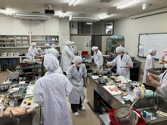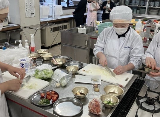 学生は、各自で考えたレシピをそれぞれ試作します。先生のご指導のもと、学生はレシピの確認やブラッシュアップを行いました。