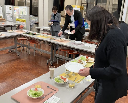 一次選考を通過したレシピの試作会を行い、最終選考に向けて、味、見た目などを審査しました。
