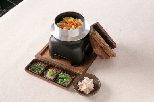 身の引き締まったずわい蟹のほのかな甘みが炊き込みご飯にしみ込み芳醇な味わいをお楽しみいただけます。また、釜めし内に漂う、ずわい蟹の香りは美味しさと共に至福の時間を演出いたします。(炊き上がりまでに10~15分ほど お時間をいただきます。)