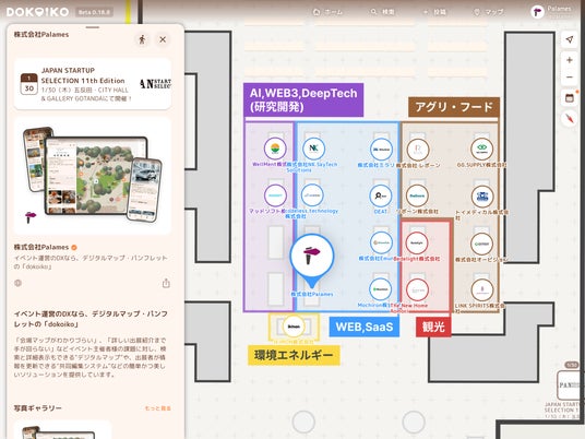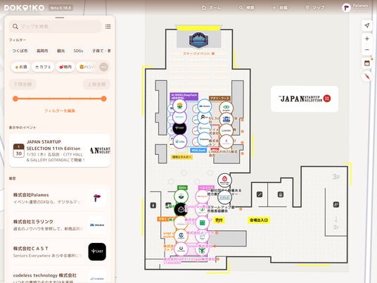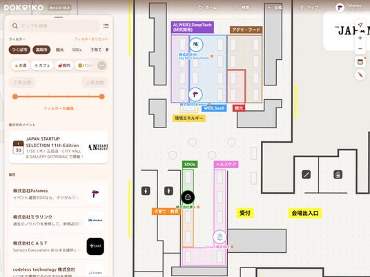 筑波大学発ベンチャーの株式会社Palames(パラメス、本社:茨城県つくば市、代表取締役:熊谷 充弘)は、スタートアップ都市推進協議会が主催する「JAPAN STARTUP SELECTION - the 11th Edition -」に採択され、ブースレイアウトとデジタルマップを制作いたしました。