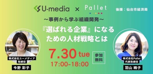 株式会社Pallet(仙台市太白区、代表取締役 羽山 暁子、以下Pallet)と株式会社ユーメディア(仙台市若林区、代表取締役社長 今野 均、以下ユーメディア)は、2024年7月より「東北・人事リデザインプロジェクト」を始動します。
