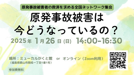 福島内外の市民団体によって構成される「原発事故被害者の救済を求める全国ネットワーク」では、1月26日、福島県郡山市において原発事故被害や廃炉の現状について広く認識を共有するため、集会「原発事故被害は今どうなっているの?」を開催します。オンラインでも配信します。