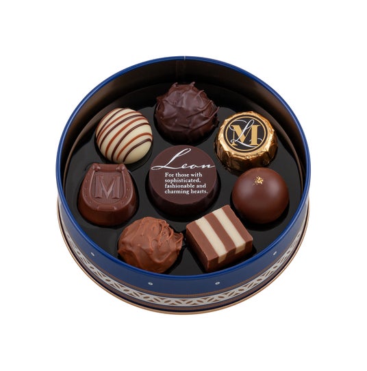 アンバサダー天文時計をイメージした2025年デザイン缶に風味豊かなトリュフやプレーンチョコレートを詰合せた一番人気のアイテムです。