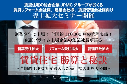 “持続可能な賃貸経営”を追求する株式会社JPMC(本社:東京都千代田区、代表取締役 社長執行役員:武藤 英明、以下「JPMC」)は、2025年2月より全国6都市で、賃貸リフォーム会社様、建築会社様、賃貸管理会社様向けの経営セミナーを開催いたします。