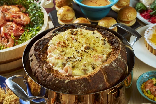 「ホールブレットグラタン」(※3)は、丸ごと一つのパンをくり抜いて器にし、アツアツの自家製シーフードグラタンをたっぷりと詰め込んだ贅沢な一品です。濃厚でクリーミーなホワイトソースとシーフードの旨味が絶妙に絡み合い、食べ応えのある贅沢な味わいに仕上げました。