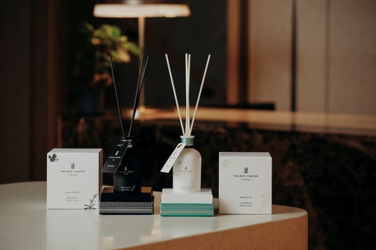 贅沢で洗練されたザ・リッツ・カールトン福岡の香り「ブラックオーキッド」と、究極のくつろぎを与えるザ・リッツ・カールトン スパ福岡の香り、「バンブーティー」。それぞれのホームディフューザーをザ・リッツ・カールトン スパ福岡にてご用意しております。