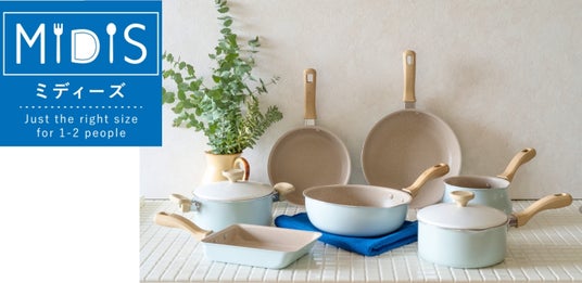 このような背景から、コンパクトなキッチン環境で調理を効率よく行いたいニーズを満たす「ミディーズ」シリーズを開発いたしました。現代のライフスタイルに合わせた1~2人分の調理に最適なサイズと多用途性を兼ね備え、忙しい日常をサポートします。効率よく調理が行えて、使用後もスッキリと片付けることができます。