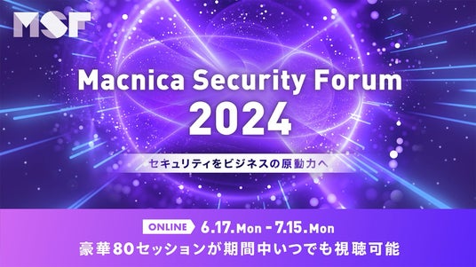 2024年6月17日(月)から7月15日(月)にかけて、株式会社マクニカが「Macnica Security Forum 2024(MSF2024)」をオンラインで開催いたします。今年は「セキュリティをビジネスの原動力へ」をテーマに、最新脅威動向などのトレンド、企業様の取り組み、豊富なソリューションセッションをお届けします。