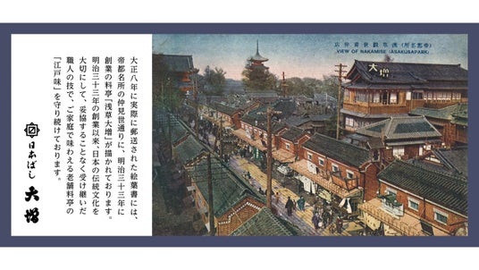 パッケージデザインは往時の日本橋の風景を描き、粋な江戸味を大事にする日本ばし大増らしい弁当として表現しました。